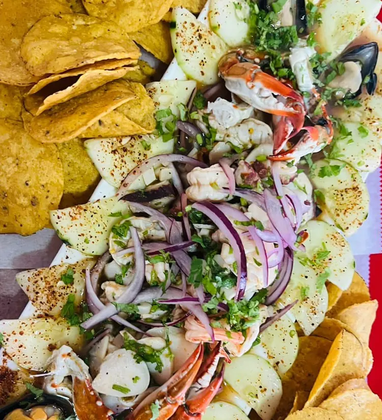 Tomatoes, onions, cilantro & lime mixed with our local seasoning & seafood of your choice.