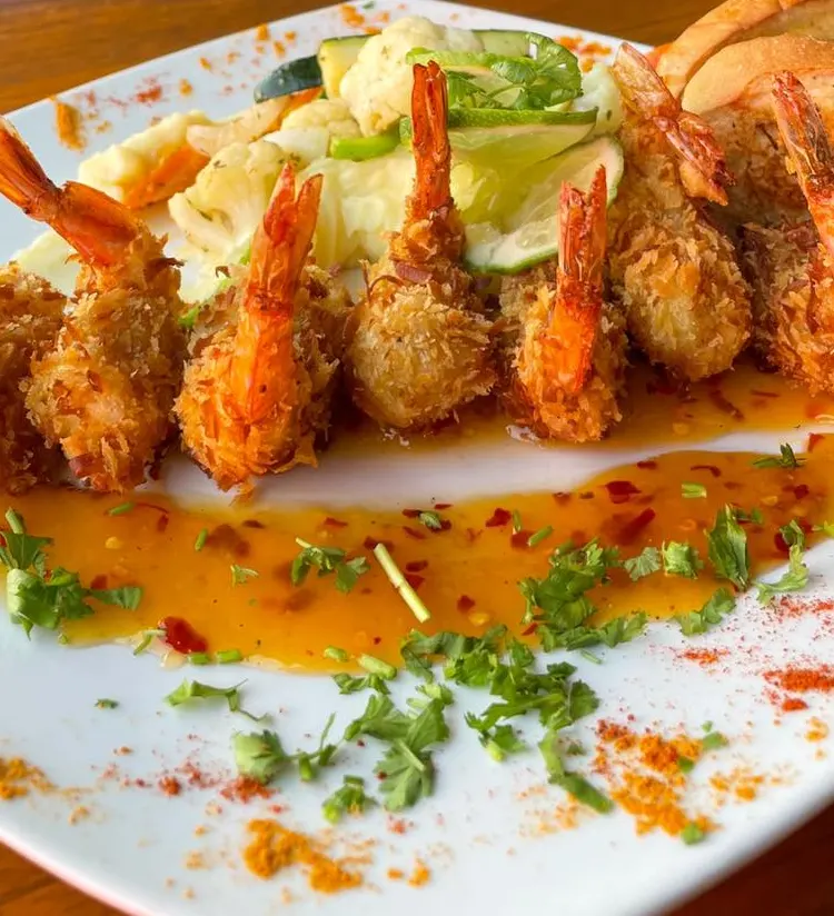Diced chocho, onions, zucchinis, carrots shrimp or fish. Cooked in a coconut broth s/w garlic bread.