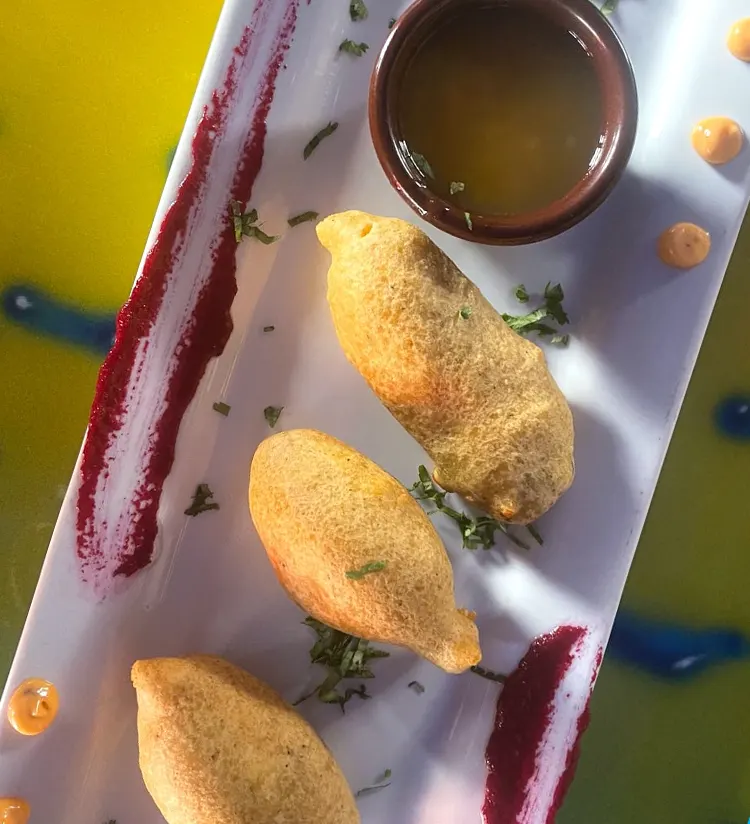 finely chopped local sauce veggies and spices deep fried w/our homemade mango jam.